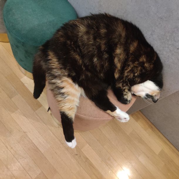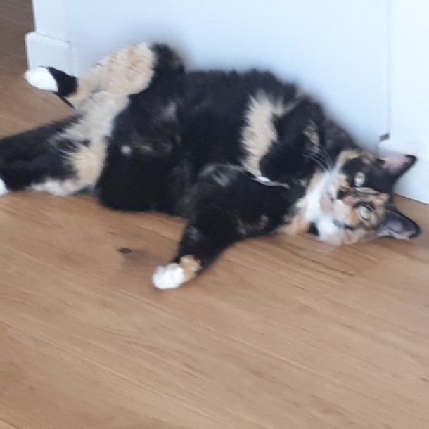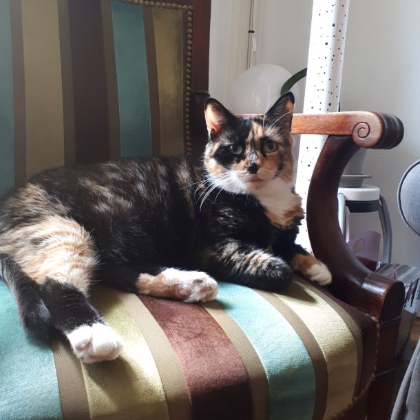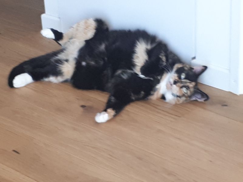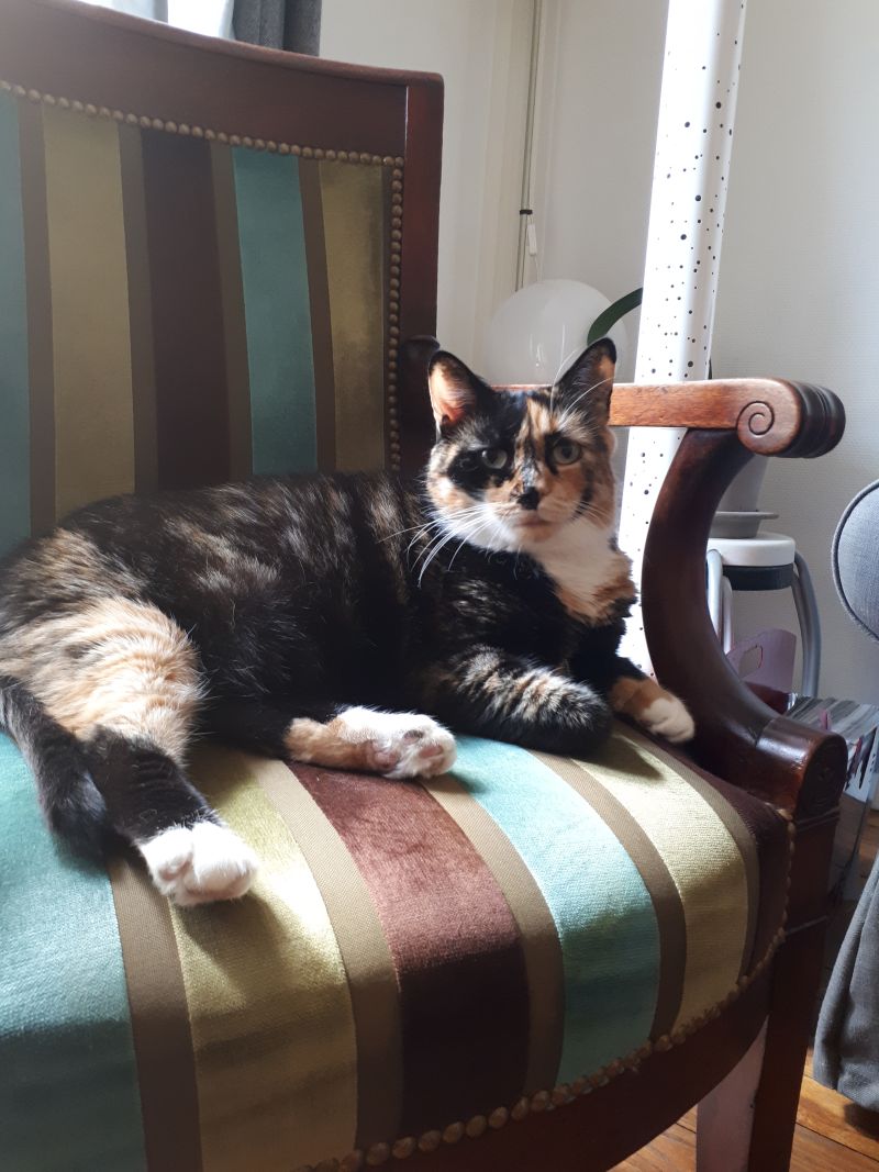 Flora est une chat discrète et tranquille. Elle aime par dessus tout la tranquillité et de bons spots pour dormir.